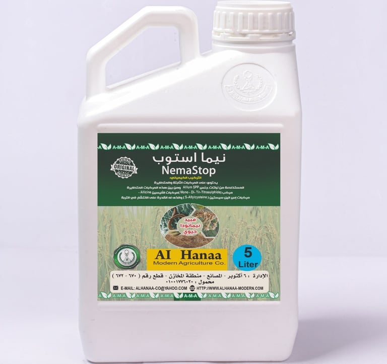 Contains stable and volatile compounds extracted from Allium spp. (garlic family plants). Key volatile compounds include Mono–Di–Tri-Titrasulphide, which spreads through the soil to eliminate infective stages of nematodes. These compounds vary in molecular weight, allowing some to penetrate downward and others upward, effectively sterilizing the root zone and targeting root-knot nematodes.